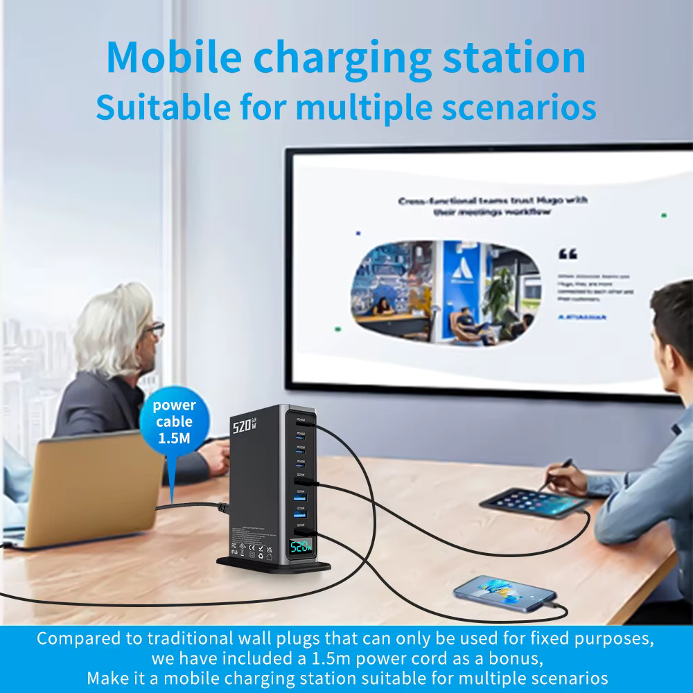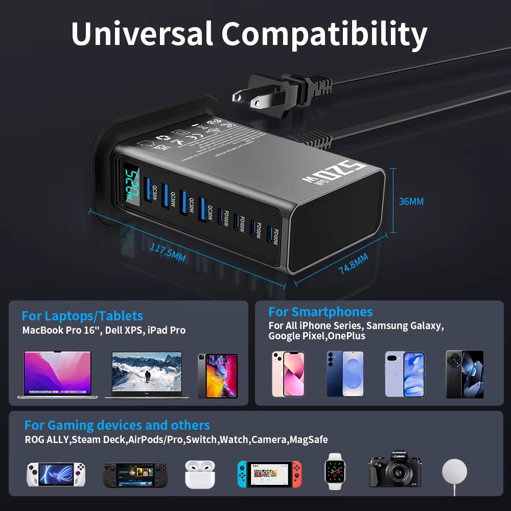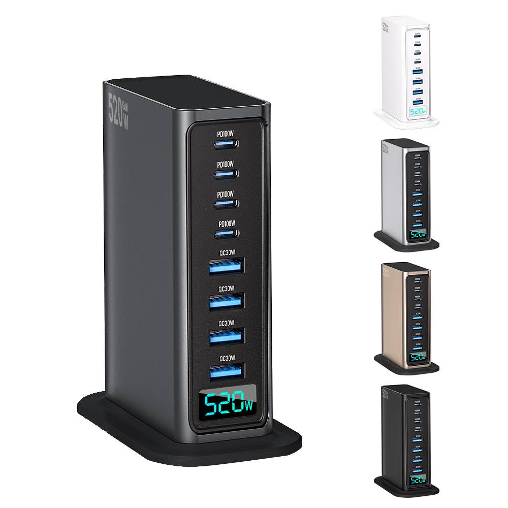 Home Electronics 520W GaN Desktop Fast Charger 4C4A 100W USB-C PD QC 3.0 Phone Charging Station for MacBook Pro/iPhone 16/15/Samsung Laptop