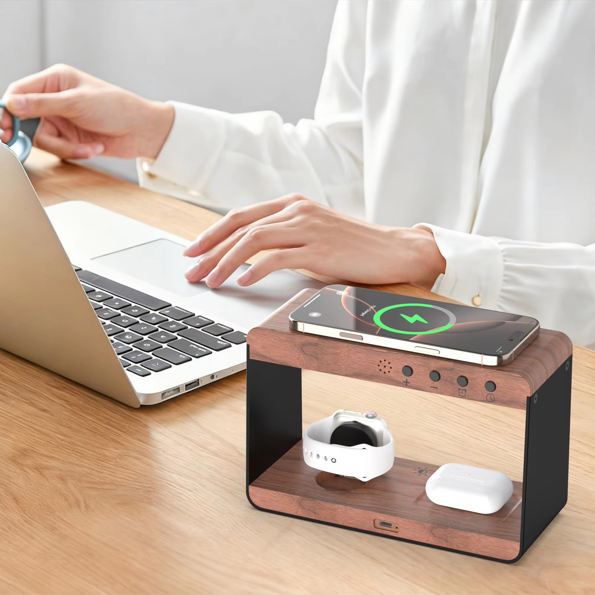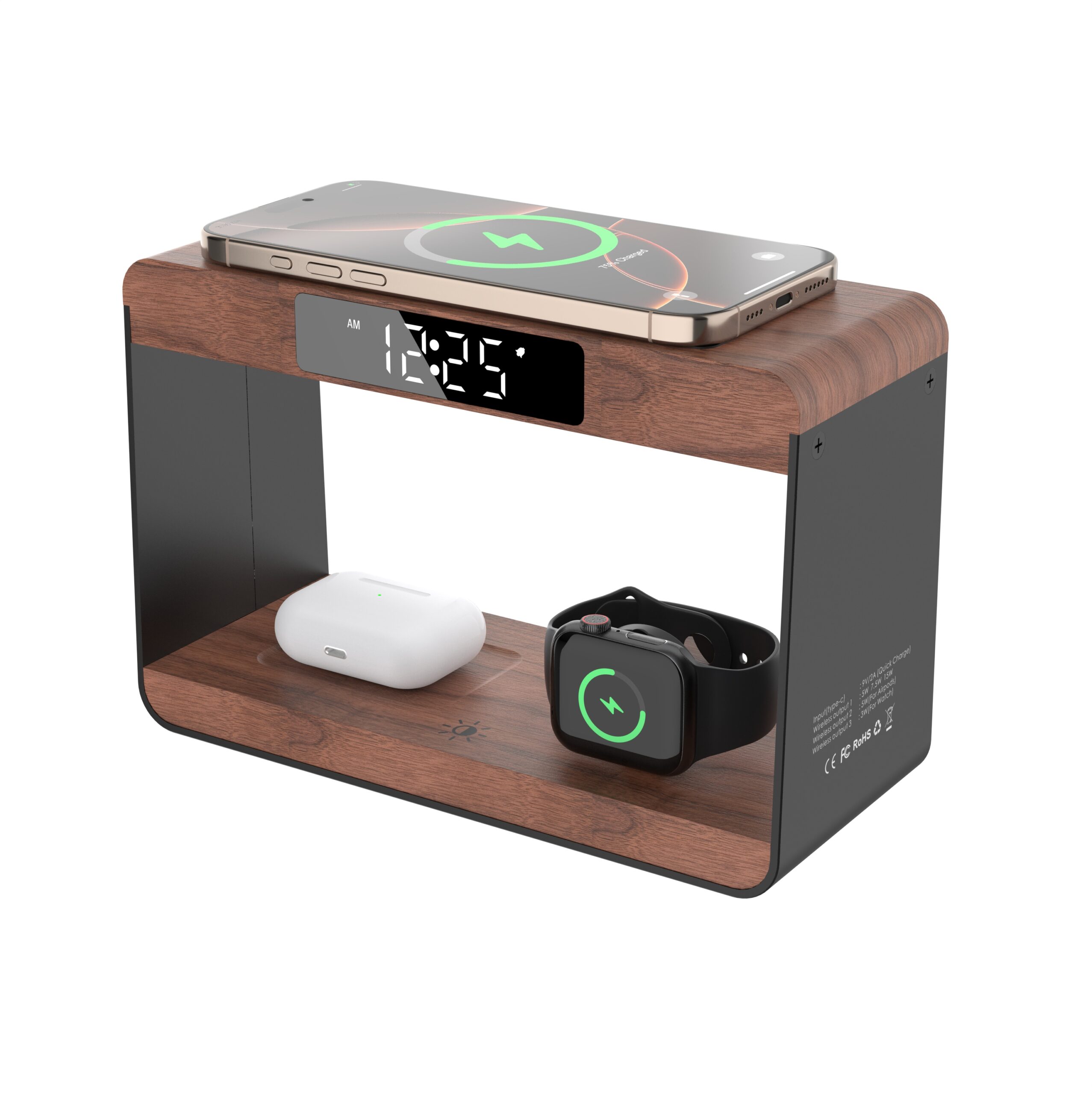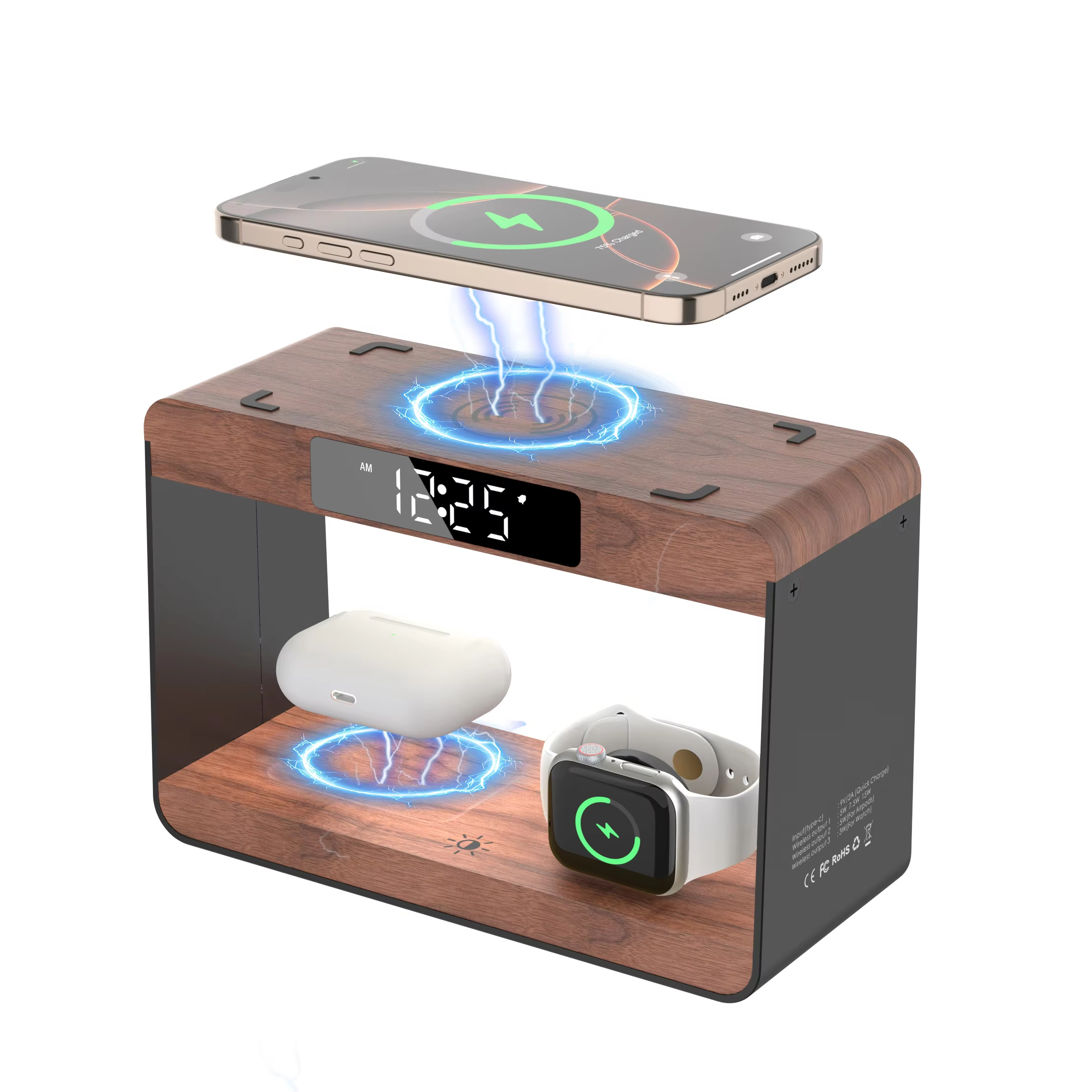 Digital Alarm Clock Wireless Charger Stand Magnetic Wireless Phone Charger for Phone &Watch &Earphone